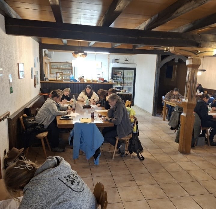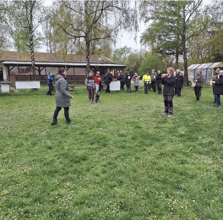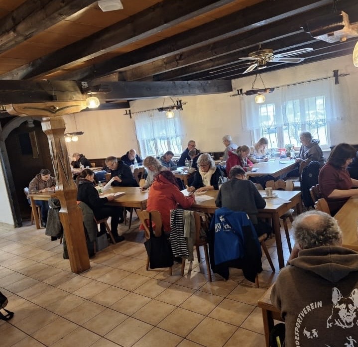 Nach mehreren vorausgegangenen Online-Sitzungen waren nun zwei anstrengende Präsenztage angesagt. 30 Teilnehmer hatten sich eingefunden, teilweise auch mit ihren Hunden, die dann auch in die praktischen Übungen eingebunden wurden. Seminarleiterin Dani Schmidt verstand es sehr gut den Prüfungsstoff zu vermitteln, unser bewährtes Thekenteam sorgte für die gute Verpflegung.