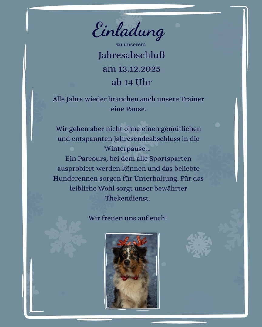 Bei Interesse bitte direkt an Alexandra wenden, 0160/ 5656893 oder einfach beim Training vorbeischauen. Sie freut sich auf viele motivierte Menschen und Hunde…